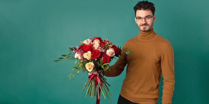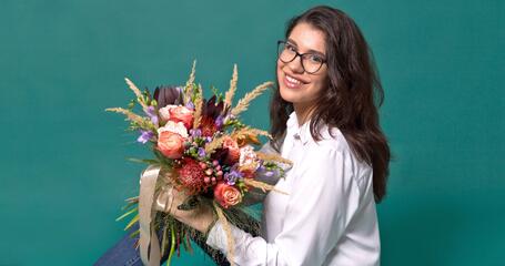Parfum floral - aranjament cu bujori și minirose