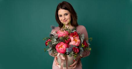 Regele florilor - aranjament cu bujori și trandafiri