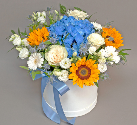 Viața este un carusel al sentimentelor. Fiecare rotație ne face să trăim emoții diferite și să conturăm în final povestea vieții noastre. Așadar, fiecare zi este un motiv de sărbătoare. Trăiește cu bucurie fiecare clipă... nu regreta nimic și nu întârzia cu nimic. Surprinde cu un cadou floral pe cineva drag ție. Hortensia albastră, prin postura sa impunătoare și robustă, susține mesajul transmis de regina soarelui ” Ridică-te și ține capul sus! Rotește-te mereu după Soare! ”