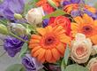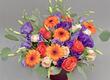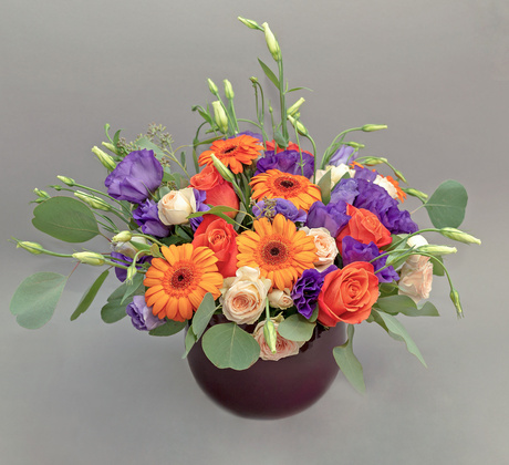 Aranjament floral purpuriu - cu lyzianthus și gerbera mini