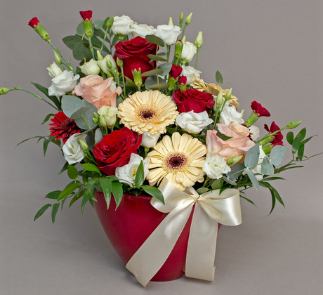 Mesaj tomnatic - aranjament cu gerbera și trandafiri