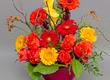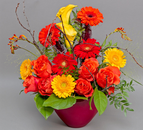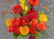 Cale galbene,trandafiri portocalii, ,gerbera galbenă și roșie, nuanțe de maro și verde, toate împreună sunt imaginea unui aranjament tomnatic plin de culoare și de sentimente...o dovadă clară a faptului că schimbarea este frumoasă!