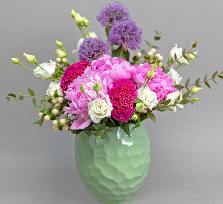 Bujorii, simbol de noblețe și rafinament, sunt o adevărată încântare vizuală în această perioadă!Alături de alliumul mov, celosia cicklam și lisianthus alb ...aceștia creează un spectacol floral vibrant și înmiresmat!