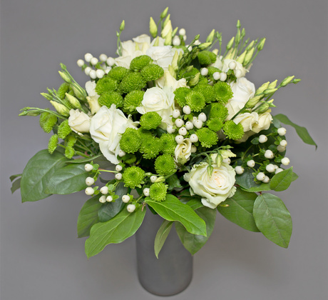 Pentru persoanele iubitoare de simplitate și naturalețe, florăresele noastre iscusite au creat buchete deosebite. Elegant și rafinat, ideal pentru orice ocazie, buchetul compus din trandafiri albi, lyzianthus și crizanteme verzi, va ajunge cu siguranță la sufletul persoanei ce îl va primi.