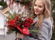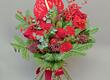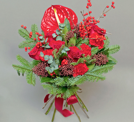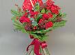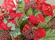 Crăciun cu flori - buchet cu trandafiri și garoafe verzi