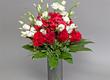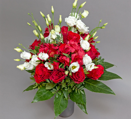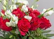 Lyzianthusul alb, alături de trandafirii roșii sunt pata de culoare necesară acasă sau la birou!