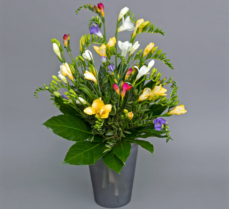 Parfum de nu mă uita - buchet cu lalele și frezii