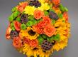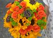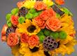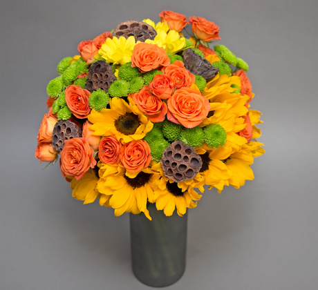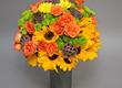 Unite într-o nebunie de culori, floarea soarelui, alături de minirosele portocalii, crizantemele galbene și verzi, dar și florile de lotus, o vor face să radieze de fericire!